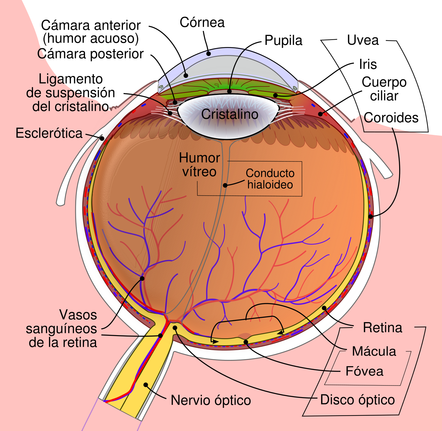 (1) Los bastones son los responsables de la visión nocturna, de la detección del movimiento más sensible, y de la visión periférica. Los conos son los responsables de la visión en alta resolución.