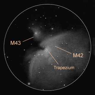 Si en un cielo relativamente oscuro, apuntamos un telescopio o incluso unos prismáticos hacia el centro de la línea de estrellas que constituyen la denominada espada de Orión, podremos observar la famosa nebulosa de Orión, también conocida como M42. Se trata de una de las nebulosas más brillantes del cielo, y cuya observación no suele dejar a nadie indiferente, incluso observándola con telescopios de mediana potencia.